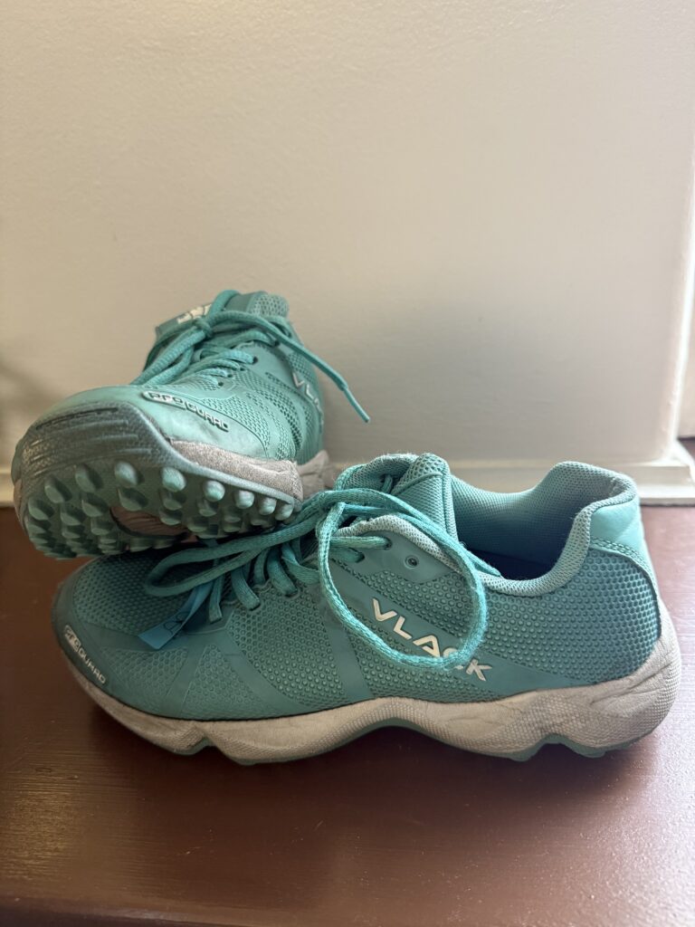 La marca Vlack es una de mis favoritas para el hockey. Uso sus palos, canilleras y zapatillas cuando juego. Este fue mi segundo año jugando con mis zapatillas Vlack y están un poco gastadas en el interior, pero me di cuenta de que el exterior todavía está como nuevo. Me gustan las zapatillas Vlack porque el exterior está hecho de goma, lo cual asegura que no se mojen. La única desventaja es que solo hay un estilo y solo cinco colores. Estas zapatillas tienen un precio de 125 dólares.