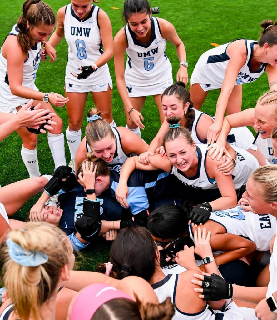 La foto a la izquierda fue durante un partido en la Universidad de Mary Washington y la foto a derecha fue cuando el equipo de UMW gano la conferencia en Tennessee noviembre 10, 2024.